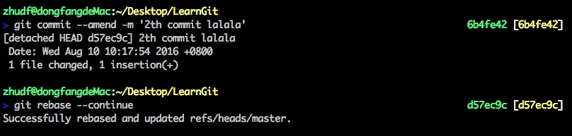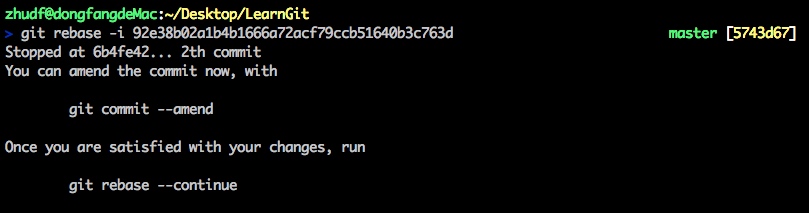 看提示,你可以使用 git commit --amend 来修改这次提交,完事了执行 git rebase --continue 命令。