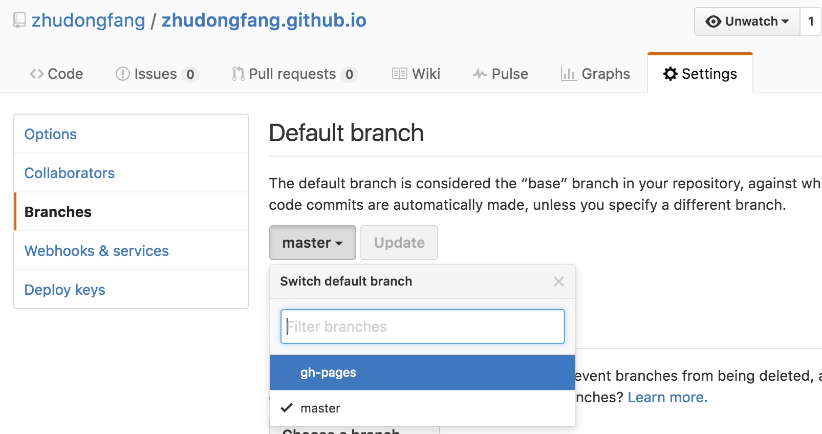 原来 master 分支是 Default Branch,Default branch是受保护的,改成gh-pages分支